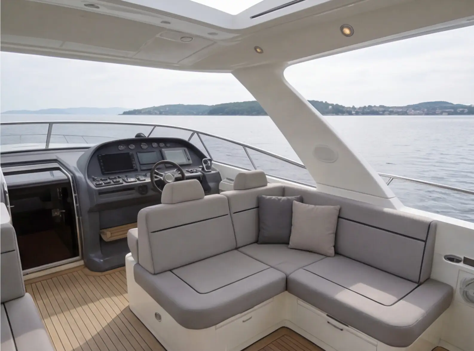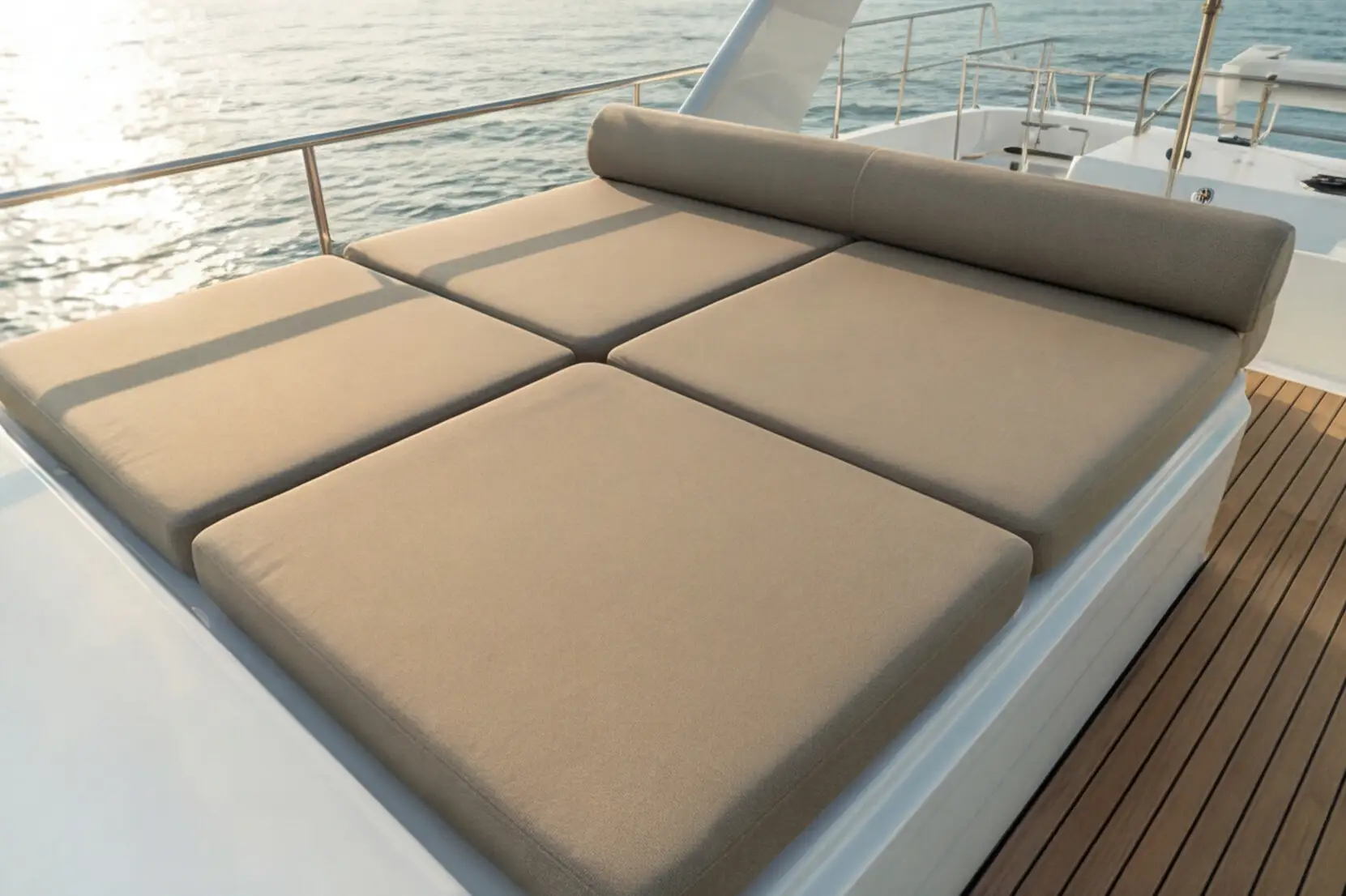 Materialoptionen: strapazierfähige Polsterstoffe (wohnlich, maritim), Kunstleder für pflegeleichte Bereiche, hochwertige Oberflächen/Optiken für einen edlen Yacht-Look.